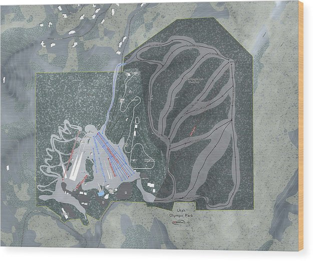 Utah Olympic Park Ski Trail Map Wood Print | Powderaddicts